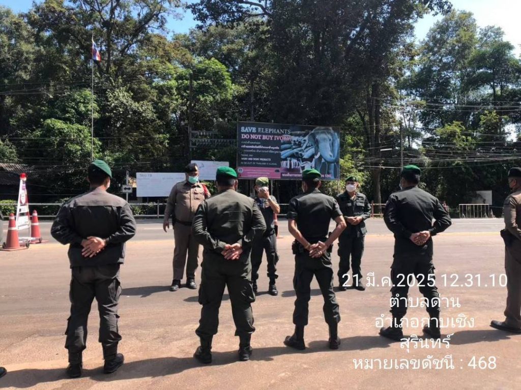 เมื่อวันที่ 21 มี.ค. 68 เวลา 12.00 น. ภายใต้การอำนวยการ ของพ.ต.อ.คำพล โนนุช ผกก.สภ.กาบเชิง พ.ต.ท.กิตติภพ ศรณ์แสงคำ รอง ผกก.ป.ฯ สั่งการให้ พ.ต.ต.วีรชน กะการดี สวป.สภ.กาบเชิง ร.ต.อ.เอนก เงินยอง รอง สวป.สภ.กาบเชิง พร้อมสายตรวจรถยนต์ รถจักรยานยนต์ สายตรวจจราจร เจ้าหน้าที่ตำรวจชุดสืบสวน ร่วมกับเจ้าหน้าที่ฝ่ายปกครองอำเภอกาบเชิง ผบ.ฉก 2 กกล.สุรนารี เจ้าหน้าที่ตำรวจ กก.3 บก.สอท.3 และเจ้าหน้าที่ตำรวจตรวจคนเข้าเมือง ร่วมกันตั้งจุดตรวจ/จุดสกัด ซึ่งเป็นมาตราการในการแก้ไขปัญหาต่างด้าว ณ บริเวณฐานกลาง บนถนน 214 ใกล้จุดผ่านแดนช่องจอม ต.ด่าน อ.กาบเชิง จ.สุรินทร์ แต่เวลา 12.00 – 14.00.น. ผลการปฏิบัติดังนี้.