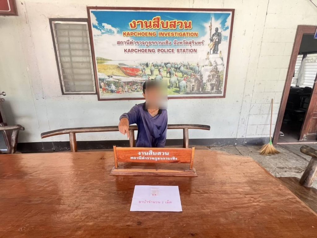 เมื่อวันที่ 17 ม.ค. 68 เวลาประมาณ 09.00 น. เจ้าหน้าที่ตำรวจชุดสืบสวน สภ.กาบเชิง ภายใต้การอำนวยการของ พ.ต.อ.คำพล โนนุช ผกก.สภ.กาบเชิง นำโดย พ.ต.ท.ประวิทย์ ประชาปกป้อง รอง ผกก.สส.สภ.กาบเชิง พ.ต.ท.สถิตย์ อินเฉิดฉาย สว.สส.สภ.กาบเชิง ร่วมกับเจ้าหน้าที่ตำรวจ ชปข.ร้อย ตชด.217และเจ้าหน้าที่ฝ่ายปกครองอำเภอกาบเชิง ได้ร่วมกันจับกุมตัวผู้ต้องหา พร้อมด้วยของกลาง ยาบ้าเม็ดสีแดง จำนวน 2 เม็ดโดยกล่าวหาว่า“มียาเสพติดให้โทษในประเภท 1 (เมทแอมเฟตามีนไฮโดรครอไรด์)ไว้ในความครอบครองโดยไม่ได้รับอนุญาตและเสพยาเสพติดให้โทษประเภท 1 (เมทแอมเฟตามีนไฮโดรครอไรด์)โดยฝ่าฝืนกฎหมาย” สถานที่จับกุม