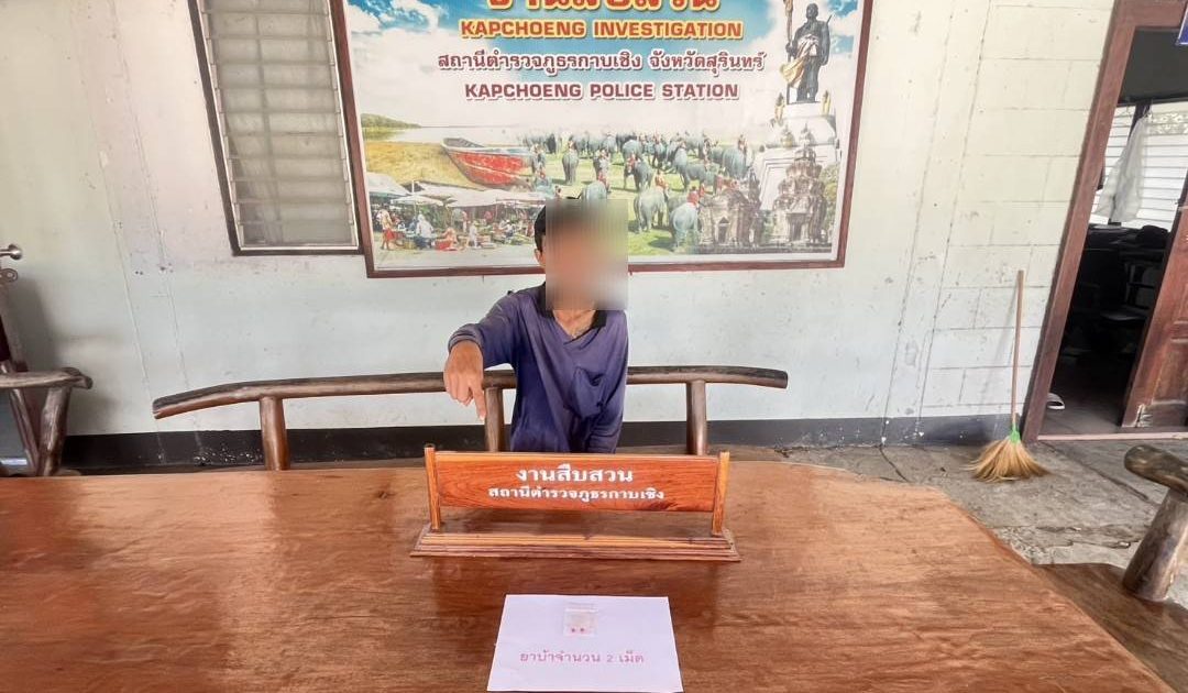 เมื่อวันที่ 17 ม.ค. 68 เวลาประมาณ 09.00 น. เจ้าหน้าที่ตำรวจชุดสืบสวน สภ.กาบเชิง ภายใต้การอำนวยการของ พ.ต.อ.คำพล โนนุช ผกก.สภ.กาบเชิง นำโดย พ.ต.ท.ประวิทย์ ประชาปกป้อง รอง ผกก.สส.สภ.กาบเชิง พ.ต.ท.สถิตย์ อินเฉิดฉาย สว.สส.สภ.กาบเชิง ร่วมกับเจ้าหน้าที่ตำรวจ ชปข.ร้อย ตชด.217และเจ้าหน้าที่ฝ่ายปกครองอำเภอกาบเชิง ได้ร่วมกันจับกุมตัวผู้ต้องหา พร้อมด้วยของกลาง ยาบ้าเม็ดสีแดง จำนวน 2 เม็ดโดยกล่าวหาว่า“มียาเสพติดให้โทษในประเภท 1 (เมทแอมเฟตามีนไฮโดรครอไรด์)ไว้ในความครอบครองโดยไม่ได้รับอนุญาตและเสพยาเสพติดให้โทษประเภท 1 (เมทแอมเฟตามีนไฮโดรครอไรด์)โดยฝ่าฝืนกฎหมาย” สถานที่จับกุม
