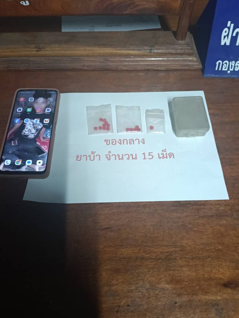 เมื่อวันที่ 3 ธ.ค.68 เวลาประมาณ 00.30 น. เจ้าหน้าที่ชุดจับกุม สภ.กาบเชิง ภายใต้การอำนวยการของ พ.ต.อ.คำพล โนนุช ผกก.สภ.กาบเชิง นำโดย พ.ต.ต.วีระชน กะการดี สวป.สภ.กาบเชิง, ร้อยเวรป้องกันปราบปราม, เจ้าหน้าที่ชุดสืบสวน สภ.กาบเชิง, เจ้าหน้าที่สายตรวจรถยนต์ และสายตรวจรถจักรยานยนต์ ร่วมกับเจ้าหน้าที่ฝ่ายปกครองอำเภอกาบเชิง และผู้ช่วยเหลือเจ้าพนักงานฝ่ายปกครองอำเภอกาบเชิง ได้ร่วมกันจับกุมผู้ต้องหา พร้อมของกลาง 1.ยาบ้าเม็ดสีแดง จำนวน 15 เม็ด 2.โทรศัพท์มือถือ ยี่ห้อ Redmi สีดำ จำนวน 1 เครื่อง