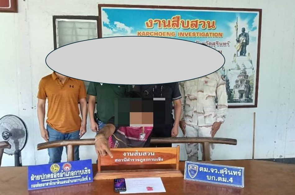 เมื่อวันที่ 16 ก.ค. 68 เวลา 12.30 น. ชุดสืบสวน สภ.กาบเชิง ภายใต้การอำนวยการและสั่งการของ พ.ต.อ.คำพล โนนุช ผกก.สภ.กาบเชิง และ พ.ต.ท.ประวิทย์ ประชาปกป้อง รอง ผกก.สส.สภ.กาบเชิง นำโดย พ.ต.ท.สถิตย์ อินเฉิดฉาย สว.สส.สภ.กาบเชิง ร่วมกับเจ้าหน้าที่ ตม.จว.สุรินทร์ และเจ้าหน้าที่ฝ่ายปกครองอำเภอกาบเชิง