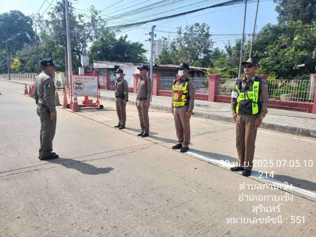 เมื่อวันที่ 30 เม.ย.68 ระหว่างเวลา 06.30 – 08.30 น. พ.ต.อ.คำพล โนนุช ผกก.สภ.กาบเชิง พร้อมชุด ได้ตั้งจุดตรวจความมั่นคง จุดตรวจตามแนวชายแดน และจุดตรวจจุดสกัดกั้นยาเสพติดฯ เคมีภัณฑ์ และสารตั้งต้น ณ ถนนสาย 214 บริเวณหน้าตู้ยาม สภ.กาบเชิง จ.สุรินทร์ เพื่อสกัดกั้นการลักลอบลำเลียงยาเสพติดฯ สกัดกั้นการขนแรงงานต่างด้าวและการกระทำผิดตาม พ.ร.บ.ตรวจคนเข้าเมืองฯ ป้องกันอาชญากรรมฯ ป้องกันการลักลอบกระทำผิดกฎหมายตามแนวชายแดน ได้ตรวจค้นรถยนต์ จำนวน 20 คัน และรถจักรยานยนต์ 10 คัน ไม่พบสิ่งของผิดกฎหมาย ตรวจพบแรงงานต่างด้าวชาวกัมพูชา หลบหนีเข้าราชอาณาจักรโดยผิดกฎหมาย จำนวน 6 ราย จึงได้ส่งตัวให้ตำรวจตรวจคนเข้าเมือง ดำเนินการตามากฎหมายต่อไป