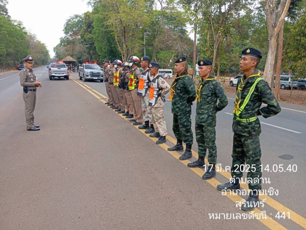 เมื่อวันที่ 17 มี.ค.68 เวลา 14.00 น. พ.ต.อ.คำพล โนนุช ผกก.สภ.กาบเชิง พ.ต.ท.กิตติภพ ศรณ์แสงคำ รอง ผกก.ป.ฯ พ.ต.ต.วีรชน กะการดี สวป.สภ.กาบเชิง พร้อมสายตรวจรถยนต์ รถจักรยานยนต์ สายตรวจจราจร เจ้าหน้าที่ตำรวจชุดสืบสวน ร่วมกับเจ้าหน้าที่ฝ่ายปกครองอำเภอกาบเชิง ผบ.ฉก.2 กกล.สุรนารี เจ้าหน้าที่ตำรวจทางหลวง เจ้าหน้าที่ตำรวจ กก.3 บก.สอท.3 และเจ้าหน้าที่ตำรวจตรวจคนเข้าเมือง ร่วมกันตั้งจุดตรวจ/จุดสกัด ซึ่งเป็นมาตราการในการแก้ไขปัญหาต่างด้าว ณ บริเวณฐานกลาง บนถนน 214 ใกล้จุดผ่านแดนช่องจอม ต.ด่าน อ.กาบเชิง จ.สุรินทร์ แต่เวลา 14.00 – 16.00.น. ผลการปฏิบัติดังนี้.