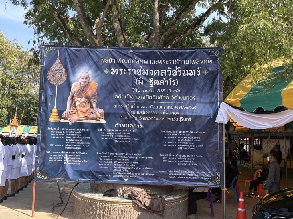 ร่วมพิธีอัญเชิญไฟพระราชทานเพลิงศพ 12 มกราคม 2568 โดย kabchoeng_kn2568 / ผลการปฏิบัติงาน เมื่อวันที่ 12 ม.ค. 68 เวลา 13.30 น. พ.ต.ท.กิตติภพ ศรณ์แสงคำ รอง ผกก.ป.สภ.กาบเชิง พร้อมด้วย ข้าราชการตำรวจและคณะแม่บ้านตำรวจ สถานีตำรวจภูธรกาบเชิง ได้เข้าร่วมพิธีอัญเชิญไฟพระราชทานเพลิงศพและผ้าไตรพระราชทาน ในงานพิธีพระราชทานเพลิงศพพระราชมงคลวัชรินทร์(หลวงปู่มี ฐิตสาโร) อดีตเจ้าอาวาสกิตติศักดิ์ วัดโพนทอง โดยมีนายชำนาญ ชื่นตา ผู้ว่าราชการจังหวัดสุรินทร์เป็นประธานในพิธี ณ เมรุชั่วคราว วัดโพนทอง ต.ด่าน อ.กาบเชิง จ.สุรินทร์ ซึ่งมีพ่อค้า ประชาชน ไปร่วมพิธีอย่างมากมาย FacebookFacebookXXLINELine