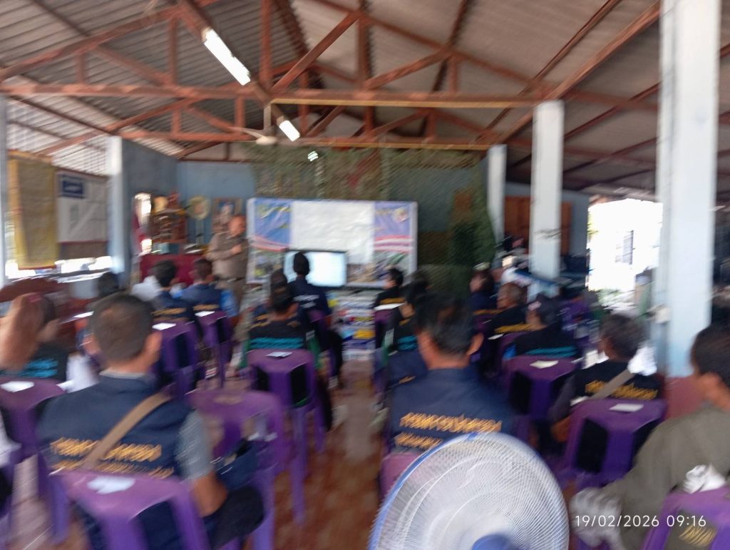 อบรมอาสาป้องกันตนเอง 19 กุมภาพันธ์ 2569 โดย kabchoeng_kn2568 / ผลการปฏิบัติงาน,ภารกิจของผู้บังคับบัญชา เมื่อวันที่ 19 ก.พ.69 เวลา 09.30 – 10.30 น.พ.ต.ท.สุภัทร ประดาสุข สวป.ชส.สภ.กาบเชิง เป็นวิทยากรให้ความรู้กฎหมายเกี่ยวกับยาเสพติด การป้องกันแก้ไขปัญหายาเสพติดในเสพติด ที่บ้านตาเกาว์ใหม่พัฒนา ม.18 ต.กาบเชิง อ.กาบเชิง ตามโครงการราษฎรอาสาป้องกันตนเอง FacebookFacebookXXLINELine
