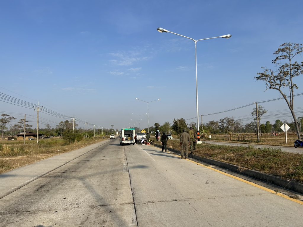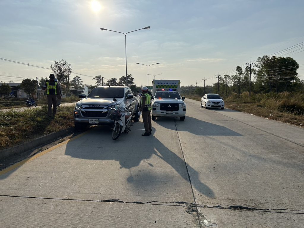 เมื่อวันที่ 26 ม.ค.69 เวลาประมาณ 07.59 น. ร.ต.ต.อาทิตย์ ศรีจานเหนือ รอง สว.(ป.)สภ.กาบเชิง/ร้อยเวร 6-0 และร้อยเวร 3-0 พร้อมด้วยสายตรวจจราจร ได้ออกตรวจสอบเหตุ ว.40 รถยนต์เฉี่ยวรถจักรยานยนต์ ทล.214 สายสุรินทร์-ช่องจอม กม.244-245 บริเวณจุดกลับรถหน้าร้านศรีเมืองเบง ต.โคกตะเคียน พบคู่กรณีคันที่ 1 คือรถยนต์ยี่ห้อ อีซูซุ รุ่นดีแมกซ์ สีเทา หมายเลขทะเบียน บษ 8825 สุรินทร์ จอดอยู่บนถนนและคู่กรณีคันที่2 คือรถยนต์จักรยานยนต์ ยี่ห้อฮอนด้า รุ่นเวฟ สีขาว หมายเลขทะเบียน 1กข 3700 สุรินทร์ อยู่ในบริเวณกลางถนนเหตุดังกล่าวมีผู้ได้รับบาดเจ็บ1ราย (ชาย) กู้ชีพนำส่งโรงพยาบาล สภาพการจราจรกีดขวางการจราจร 1 ช่องทางพนักงานสอบสวนตรวจสอบที่เกิดเหตุ พร้อมเวรจราจรอำนวยความสะดวกการจราจร จนเสร็จสิ้นการจราจรปกติ