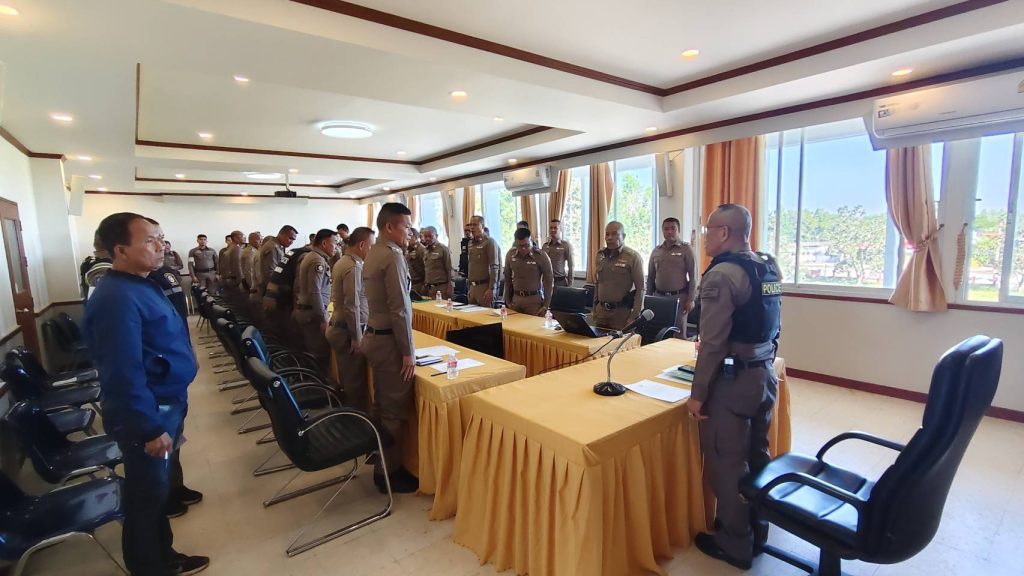 วันที่ 27 ก.พ. 69 เวลา 09.00 น.. พ.ต.อ. คำพล โนนุช ผกก.สภ.กาบเชิง ได้ประชุมข้าราชการตำรวจ สภ.กาบเชิง เพื่อประชุมกำชับเกี่ยวกับการปฏิบัติหน้าที่ให้ปฏิบัติด้วยความสุจริต เคร่งครัด ต่อระเบียบ วินัย เต็มใจให้บริการประชาชน เพื่อให้เกิดความผาสุก ปฏิภาณตน เป็นข้าราชการที่ดี และกำชับเกี่ยวกับนโยบายต่อต้านการรับสินบน ไม่ให้เข้าไปเรียกรับผลประโยชน์ หรือรับสินบนใด ๆ จากการปฏิบัติหน้าที่