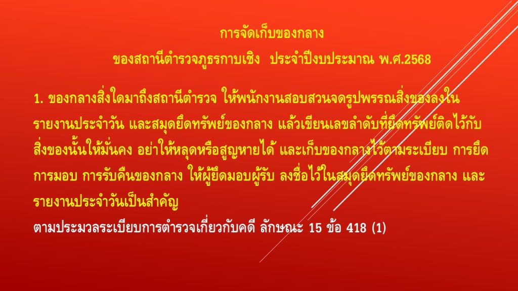 และการจัดเก็บของกลาง ประจำเดือนตุลาคม พ.ศ.2567