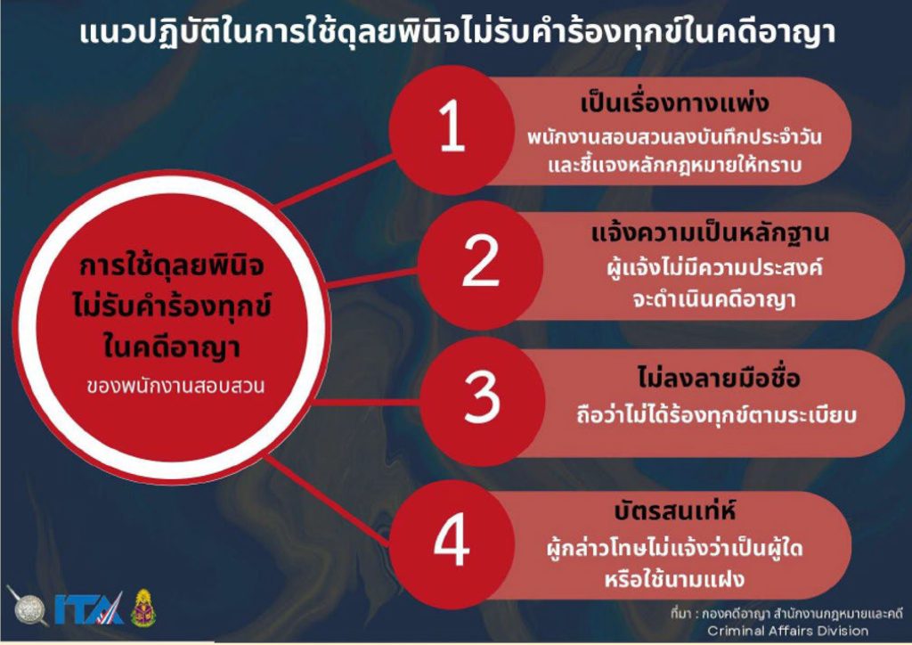 แนวปฏิบัติในการใช้ดุลยพินิจไม่รับคำร้องทุกข์ในคดีอาญา