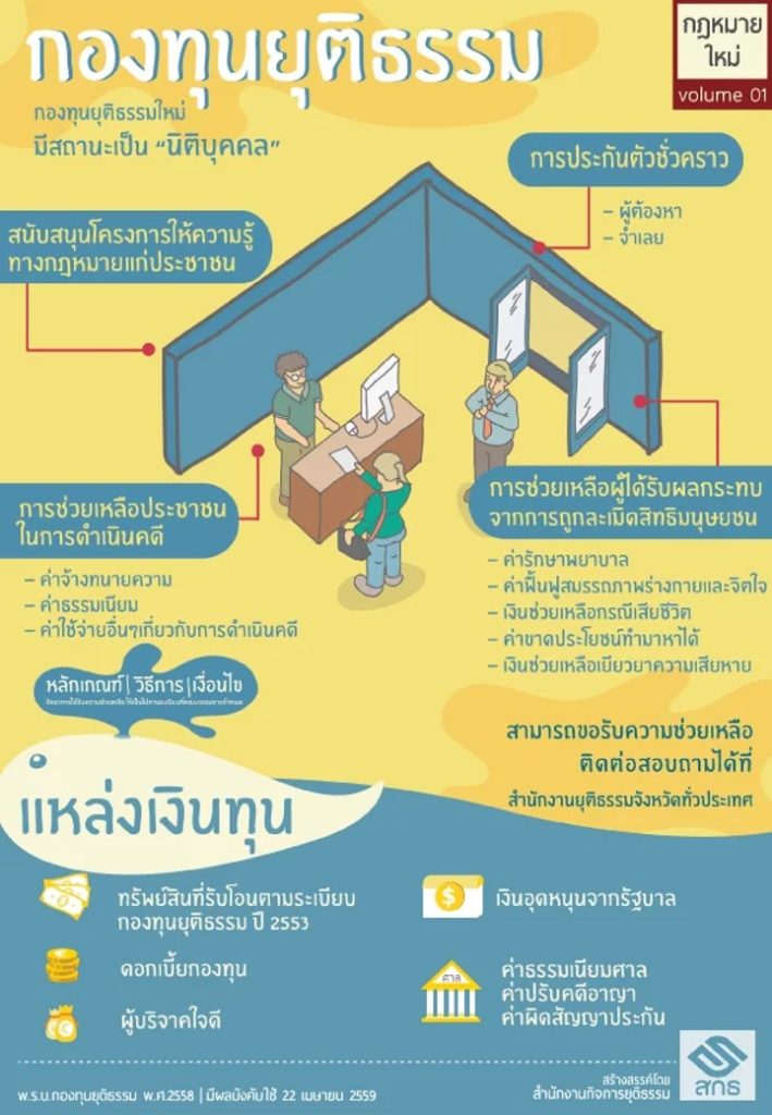 ที่มา กองทุนยุติธรรม คือ กองทุนช่วยเหลือโจทก์และจำเลยในด้านค่าใช้จ่ายที่เกิดขึ้นระหว่างดำเนินคดี เช่น เงินค่าประกันตัว ค่าจ้างทนายความ โดยมุ่งให้ความช่วยเหลือผู้มีรายได้น้อยและผู้ที่เชื่อว่าไม่ได้กระทำความผิด